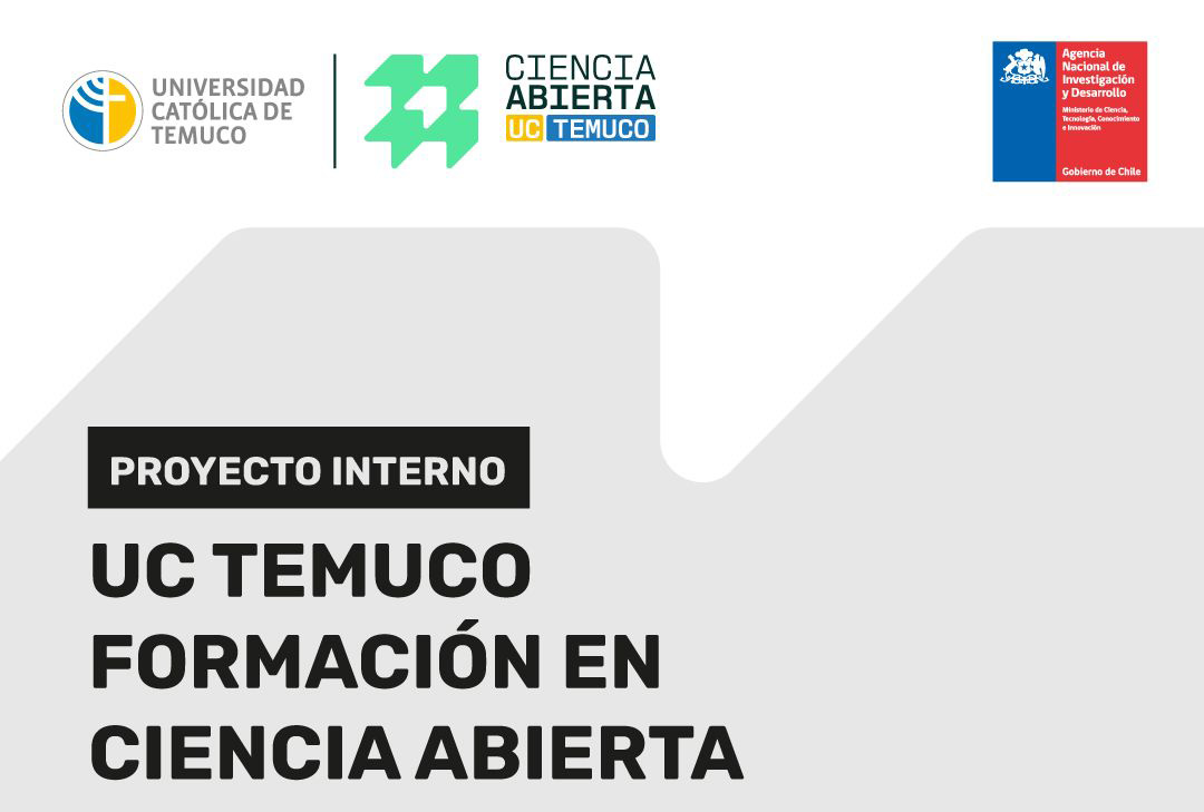 Con el Proyecto Interno UC Temuco se busca desarrollar un programa de formación en Ciencia Abierta, adaptado a las necesidades de cada facultad en las temáticas de Gestión y Apertura de Datos de Investigación; Ciencia Abierta y la Investigación Responsable; y Herramientas y Plataformas para la Ciencia Abierta.